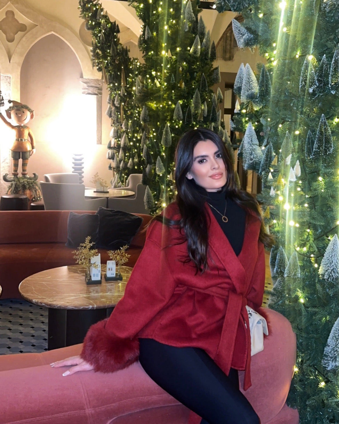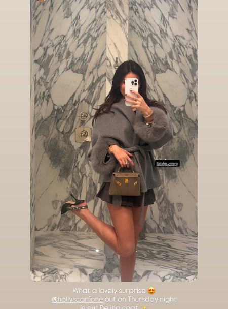 The Delina coat is crafted in double wool or a luxurious wool-and-cashmere blend, it’s the perfect piece for both everyday wear and evening outings.